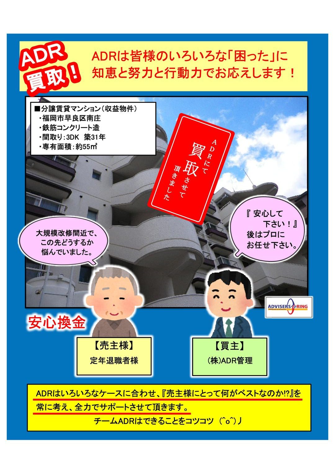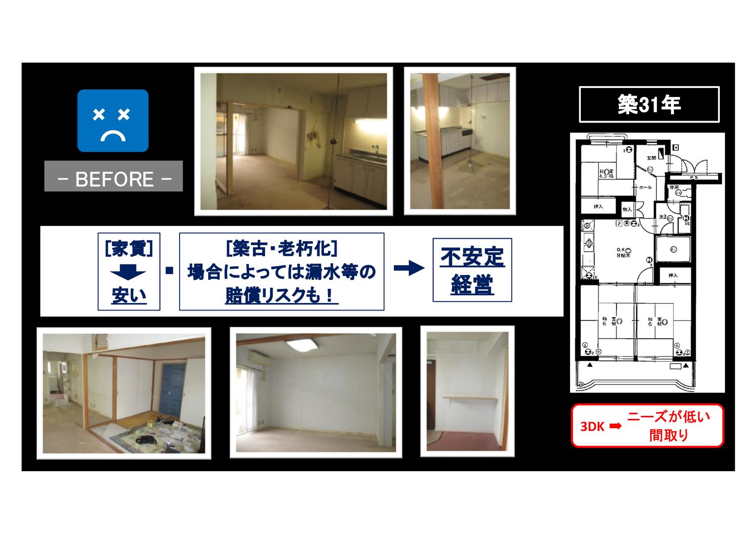「 大規模改修工事間近の築31年分譲マンション(3DK・約55㎡)