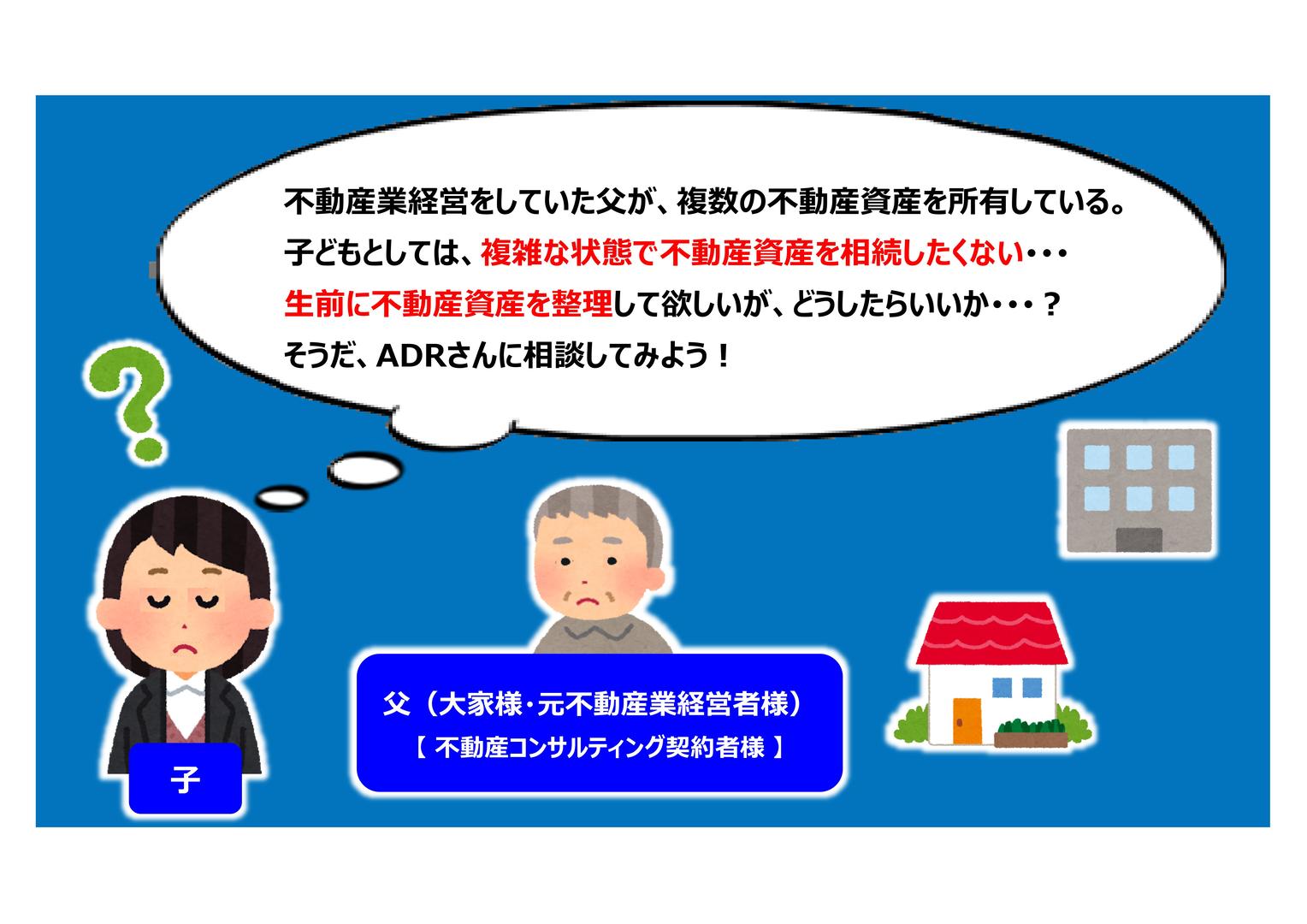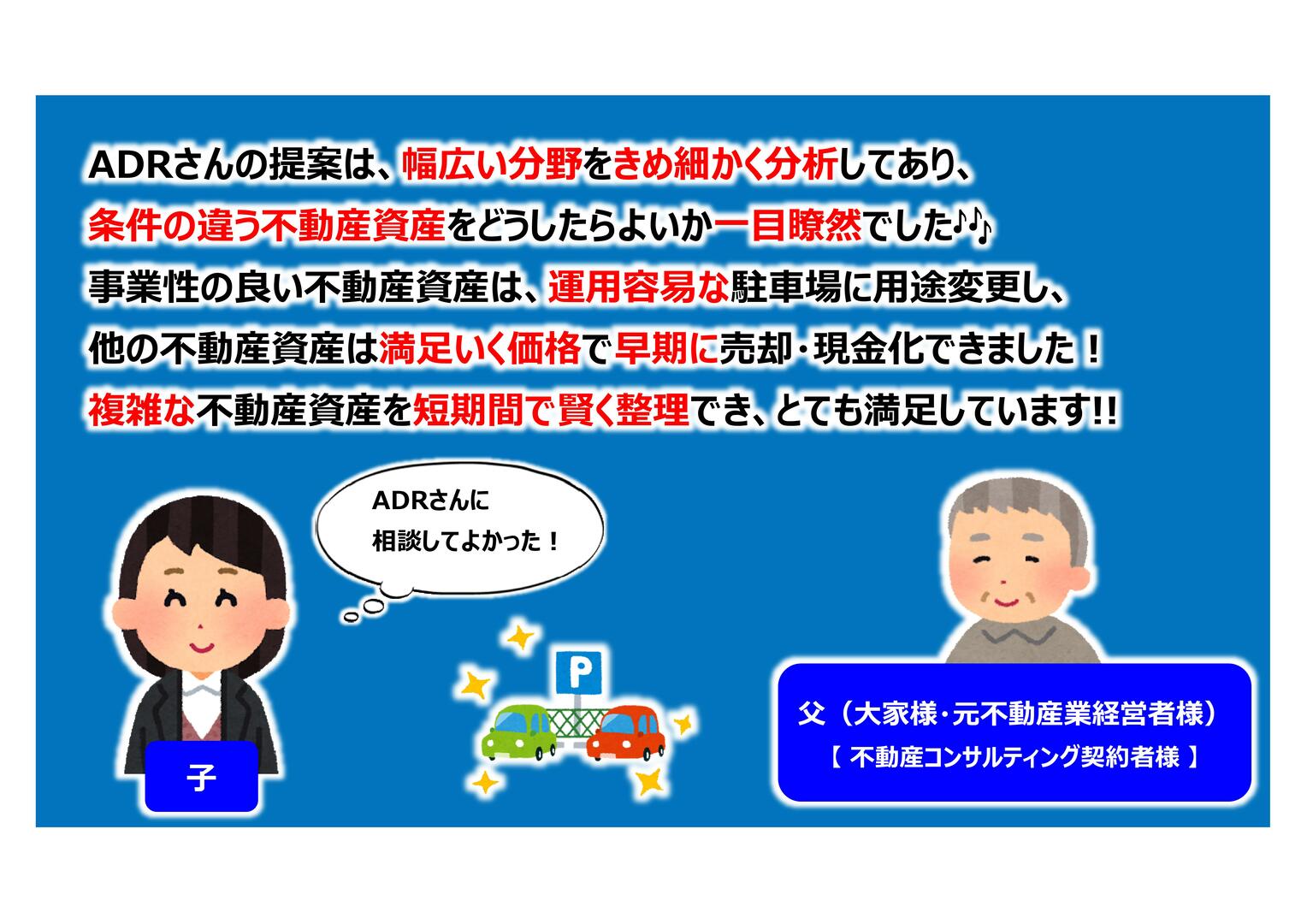 「 正直言って ありがた迷惑! 複雑な状態のままで不動産資産を相続したくない!どうしたらいいか・・・? 」 02 収益物件 22 駐車場 23 借地 26 資産管理 31 コンサルティング 33 相続(財産分与等) 34 売買仲介 53 土地・建物管理 〈お悩み〉 父(元不動産業経営者様)が不動産資産を複数所有している。 私(子)は全く別の仕事をしており、 不動産の事が詳しくわからない・・・ 子どもとしては、複雑な状態のままで 不動産資産を相続したくない! どうしたらいいか・・・?
