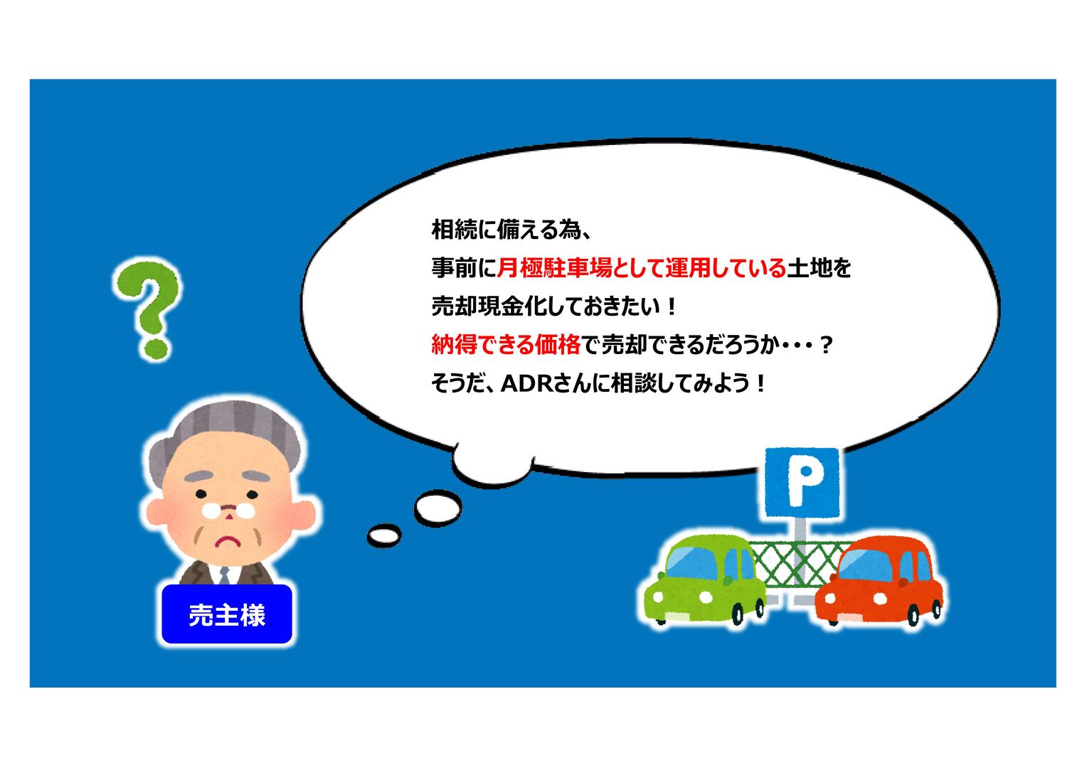 「 将来の相続に備えて、事前に月極駐車場(駐車区画×9台)を納得できる価格で売却現金化したい! 」